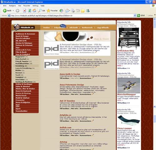 Företagets 6 produkter visas till höger på valfria underkategori-sidor.